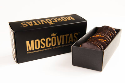 Pasta de almendra marcona española y cobertura de chocolate asturiano. Son elaboradas "una a una" de manera totalmente artesana por la prestigiosa repostería ovetense de Rialto. La calidad de las moscovitas de Rialto hacen que sea un manjar de la gastronomía española.