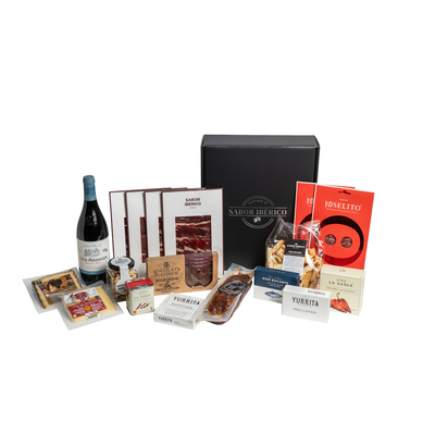 Perfecta para regalar o para disfrutar en las ocasiones más especiales, esta cesta representa lo mejor de la gastronomía ibérica y el arte de la buena mesa.
